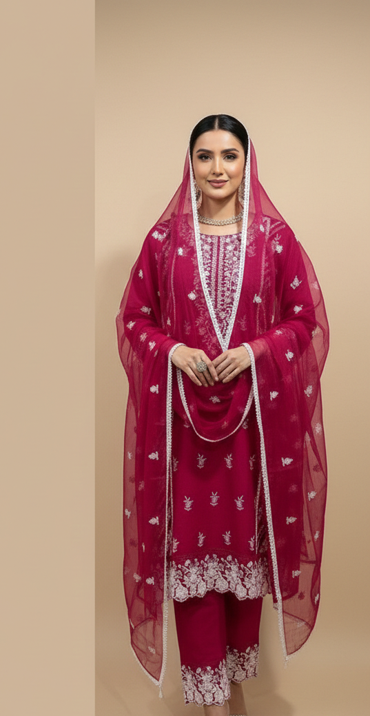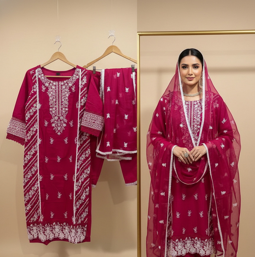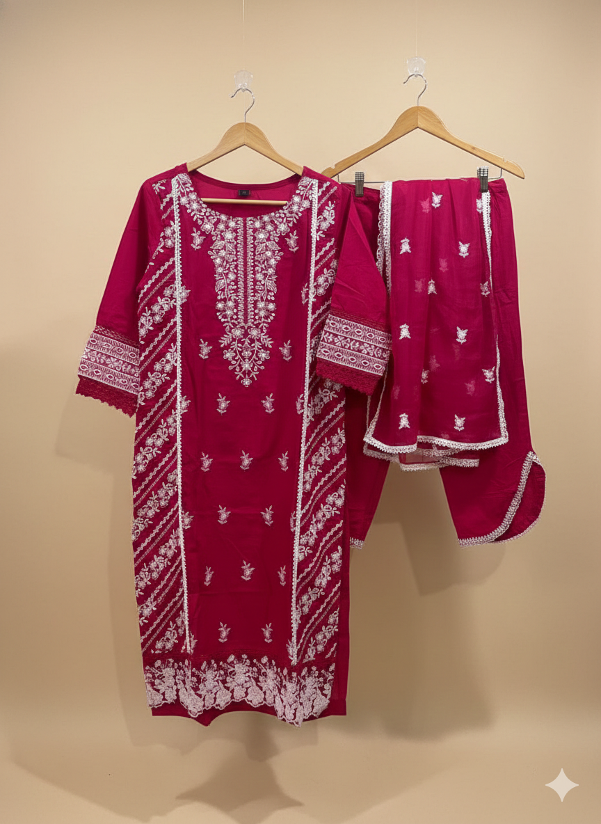 • Color: Bright Rani Pink  with white thread work.
